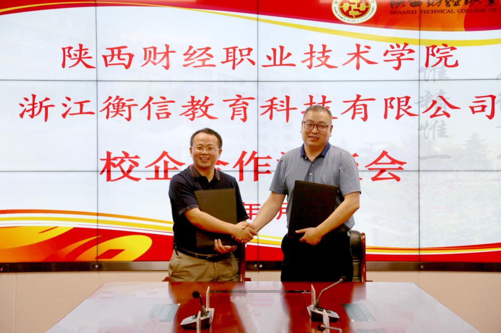 程书强代表学院与浙江衡信教育科技有限公司总经理李高齐签订校企合作框架协议。下一步双方将统筹、整合教学资源,紧盯前端产业发展需求,厚集前沿技术成果,在联合教育资源方面加强合作,抓紧起草、落实落细具体可行的方案,并将具体项目落实到团队,争取早日取得扎扎实实的合作成效。
