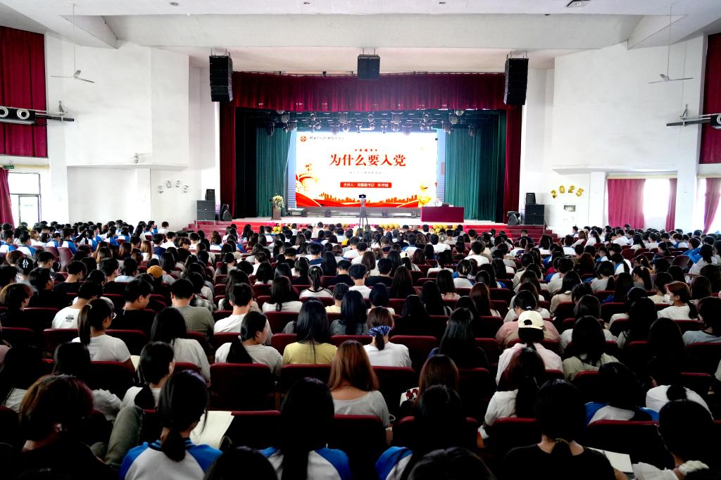 5月28日下午,党委副书记朱华斌以《为什么要入党》为题,在学院大礼堂为党校第三十二期培训班学员讲党课。全体辅导员,师生入党积极分子、发展对象近1000人参加了培训。
