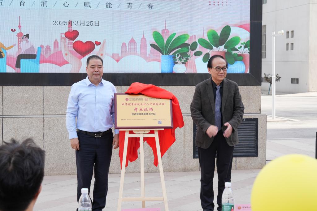 郑林科与雷旭共同为“中华优秀传统文化人才培养工程陕西财经职业技术学院考点机构”揭牌。郑林科表示要挖掘传统文化的思想精髓,创新融入心理健康教育,通过特色课程、艺术表演等载体构建本土化育人模式,以文化滋养提升学生心理韧性,实现传统文化与心理育人的双向赋能。