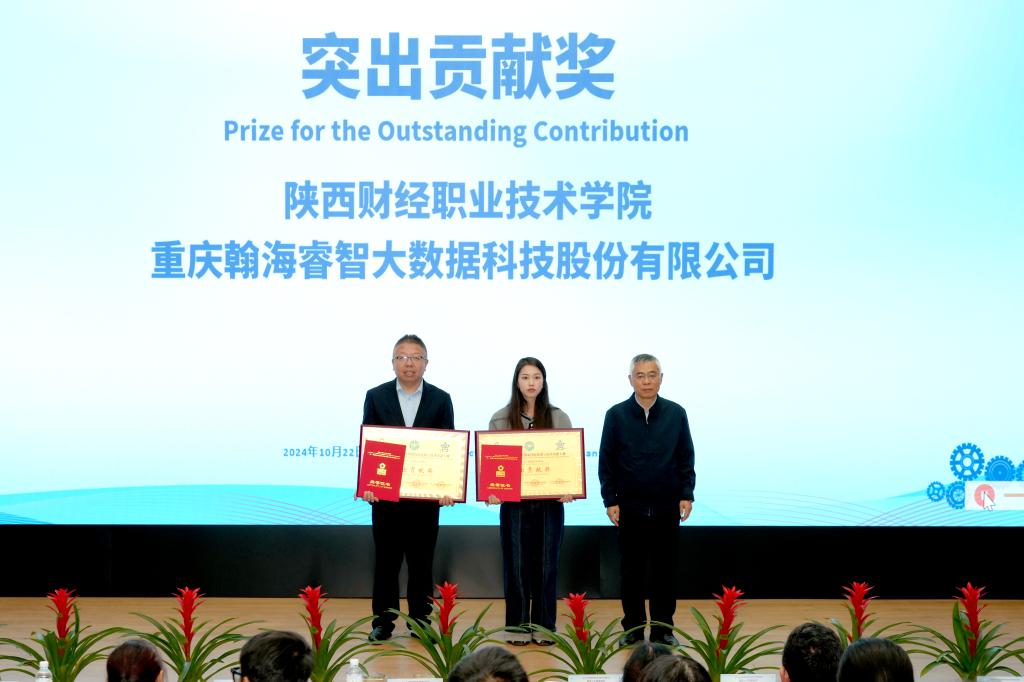 金砖国家技能发展与技术创新大赛技术委员会总监张云启,一带一路暨金砖国家技能发展国际联盟大数据和人工智能专业委员会副主任江南,本赛项仲裁长、重庆警察学院数字警务科技创新团队负责人刘彦飞,陕西财经职业技术学院党委委员、党委宣传部部长严丽丽出席闭幕式。各裁判员、参赛选手和领队,重庆翰海睿智大数据科技股份有限公司有关部门负责人,陕西财经职业技术学院相关处室负责人、部分师生代表参加会议。闭幕式由重庆翰海睿智大数据科技股份有限公司总裁陈继主持。