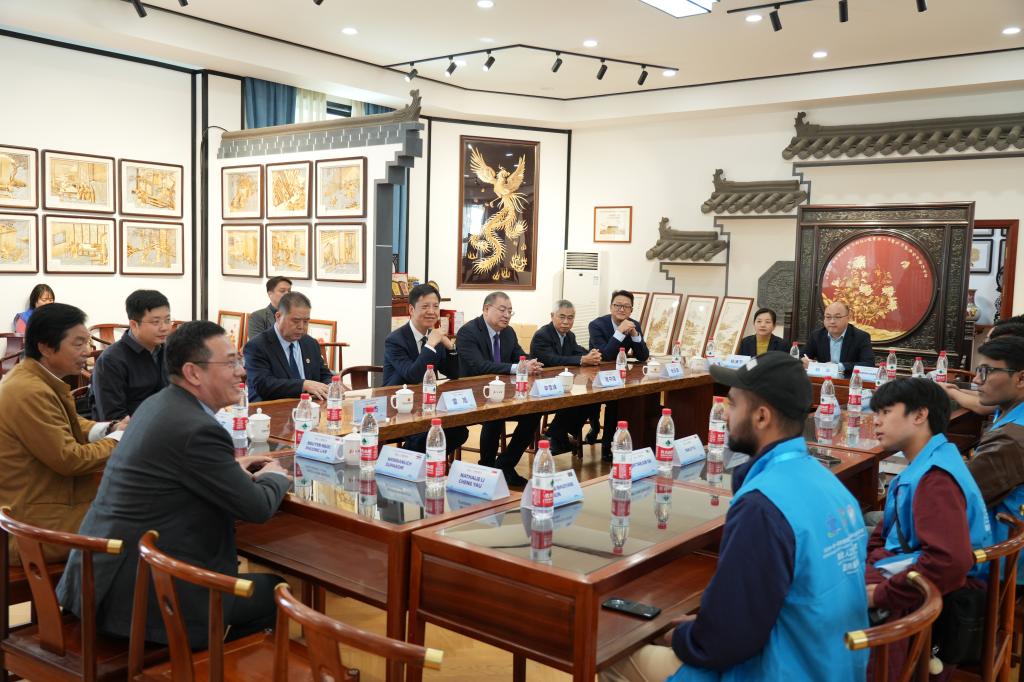 开幕式后,学校召开了参赛留学生访谈交流会。申雪峰介绍了陕西丰富的历史文化和职教出海的重要举措,勉励留学生们认真学习中华优秀传统文化,努力提高专业技能,做中外文化交流和技能传承的践行者,鼓励他们赛出好成绩。申雪峰和程书强为与会留学生赠送了我校教师、青年书法家手书的《道德经》。
