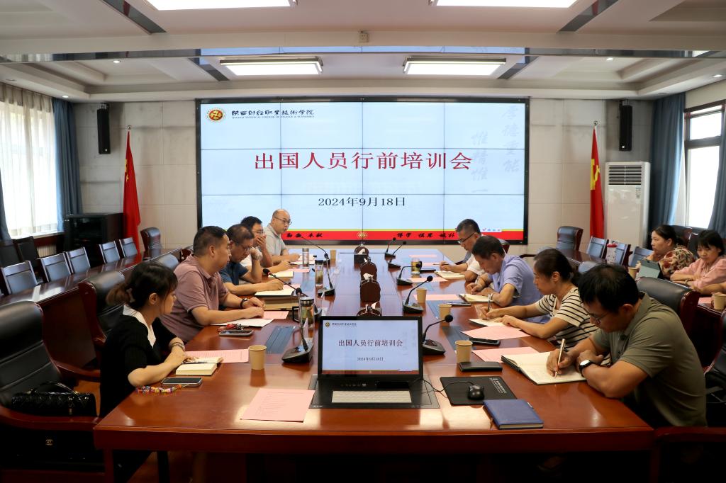 9月18日下午,我校在办公楼四楼会议室召开2024年下半年出国(境)团组行前培训会。我校党委书记高玉峰,党委副书记、纪委书记殷兴光,出国(境)团组人员、国际交流与合作处全体工作人员参会,会议由副校长王勇主持。