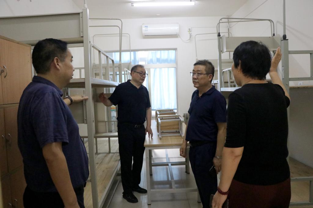 学校领导依次对校医院、学生餐厅、学生公寓、校园超市、教学楼、实训楼、体育馆、图书馆、在建消防水池、快递站点、校园门禁、南院等学校重点部位和各二级学院的开学准备工作进行了全面检查指导。