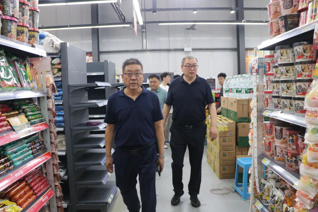 在校园超市,高玉峰、程书强详细了解了货物储备、上架、价格情况。强调要配足货源,定期加强货物检查,超市货物务必要安全卫生、物美价廉,切实保障师生生活需要。