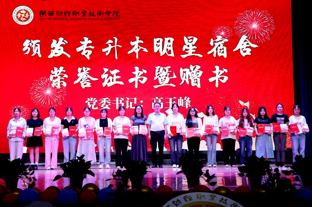 党委书记高玉峰为“专升本明星宿舍”学子颁发荣誉证书并赠礼