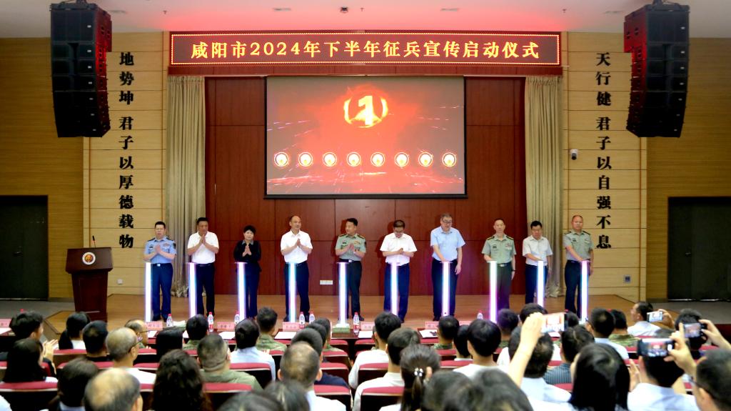 6月14日上午,咸阳市2024年下半年征兵宣传启动仪式在我校学术报告厅举行。咸阳市征兵工作领导小组副组长焦维东,秦都区委书记景雪峰,咸阳市委宣传部副部长李玉冰,咸阳军分区动员处处长欧元军,市委市政府相关部门负责人,我校党委书记高玉峰及学校其他领导班子成员出席启动仪式。咸阳市部分市县区征兵领导小组成员,19所高校、各街办征兵工作负责人及我校400余名师生参加启动仪式。仪式由我校校长程书强主持。