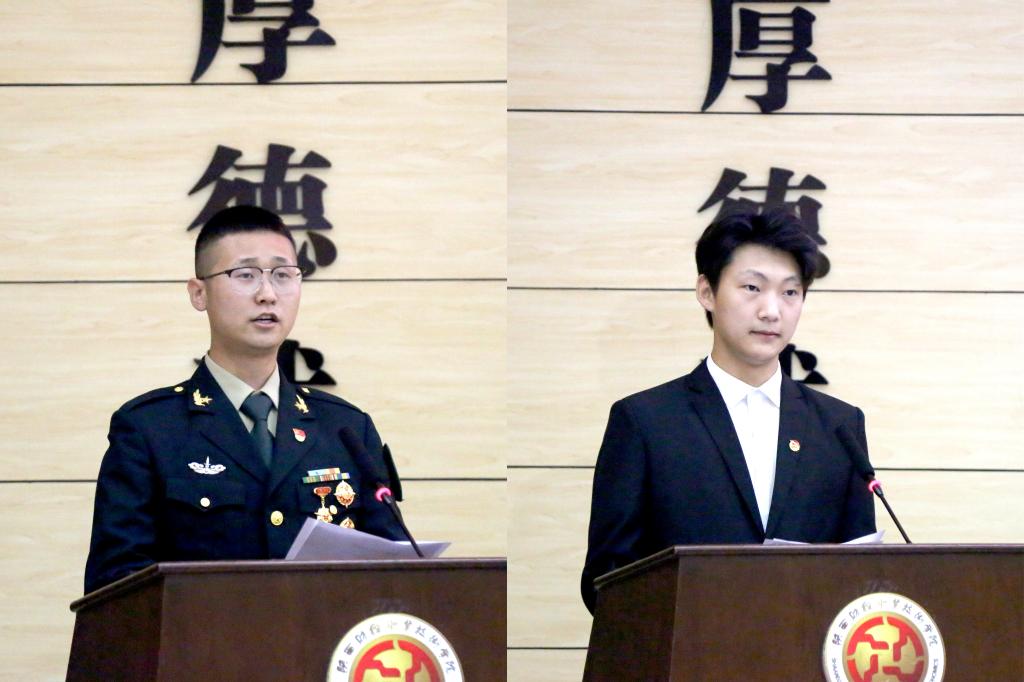 我校退役士兵大学生代表张浩同学分享了他的军旅生涯和感受体会,拟应征入伍大学生代表杨红康同学表达了响应国家号召,携笔从戎,筑梦军营,报效祖国的赤子之心。
