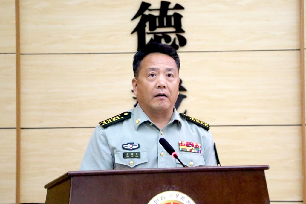 秦都区人武部上校政治委员冯宏划代表咸阳市属武装部作表态发言