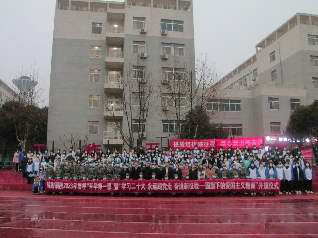 为深入学习贯彻党的二十大精神,深化我校师生爱国主义教育,团委于2月13日上午7:30在学校操场举办了“开学第一课”暨“学习二十大 永远跟党走 奋进新征程——国旗下的爱国主义教育”升旗仪式。参加本次线下活动的有校团委书记、各二级学院团组织负责人以及学生代表共计300余人。全体在校生线上观看了升旗仪式。