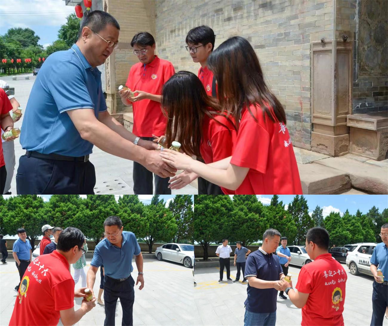 仪式结束后,张志华一行亲切慰问志愿者,为志愿者们送上消暑降温物品,详细询问了志愿者的吃、住、行以及工作开展情况,并悉心叮嘱志愿者实践期间要注意安全,听从指挥,秉承“党有号召,团有行动”光荣传统,做到不负时代,不负韶华,不负党和人民的殷切期望,让青春年华在为国家、为人民的奉献中焕发绚丽光彩。