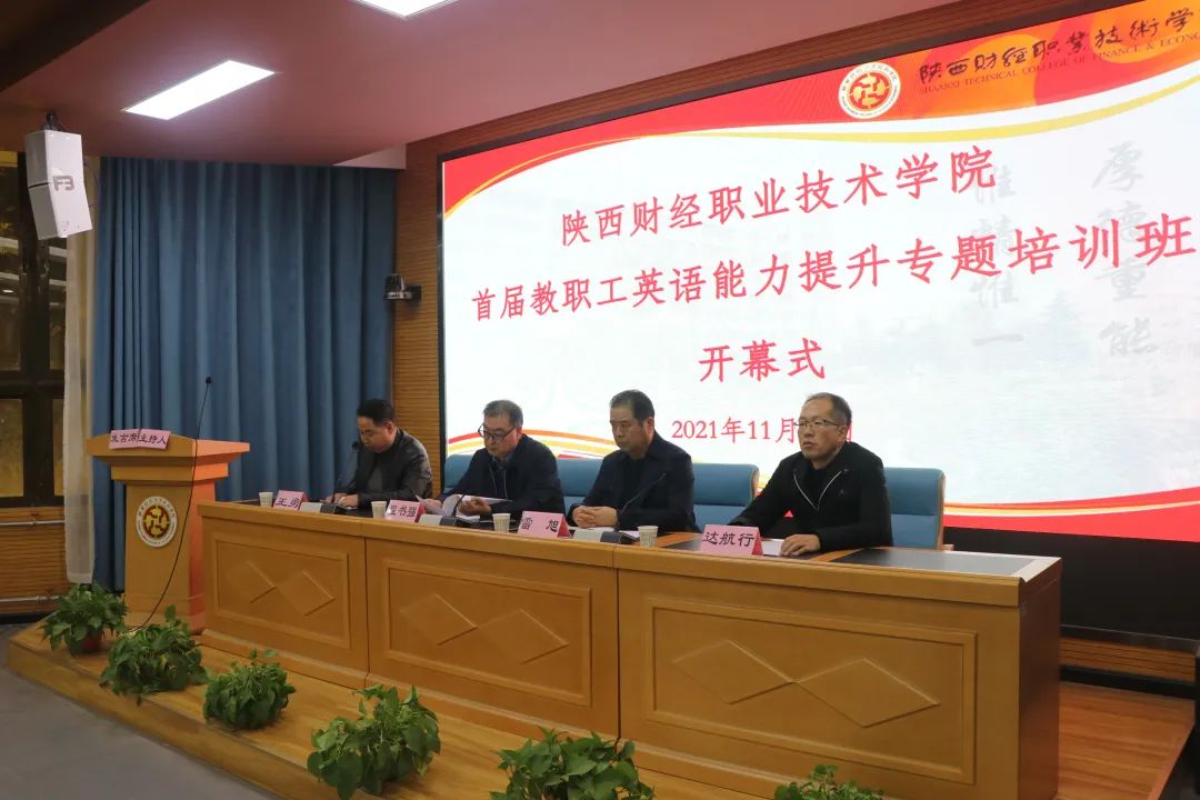 2021年11月15日晚,我校首届教职工英语能力提升专题培训班开班仪式在继续教育报告厅举行。学校院长程书强,副院长雷旭、王勇出席,相关职能部门负责人、授课教师、70余名参训学员参加了此次开班仪式,会议由王勇主持。