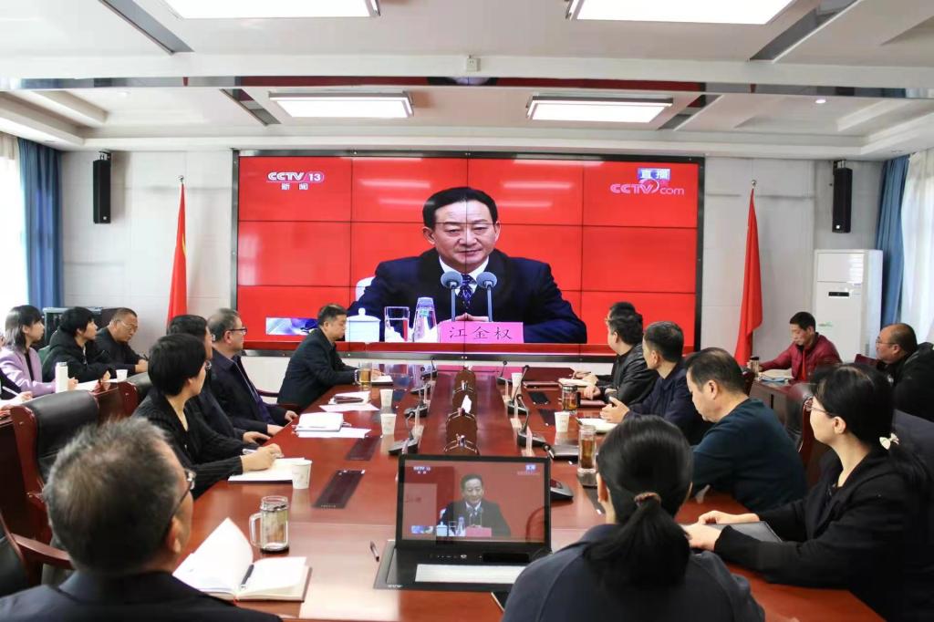 学院领导班子成员、部分机关党员干部在办公楼四楼会议室集中收看
