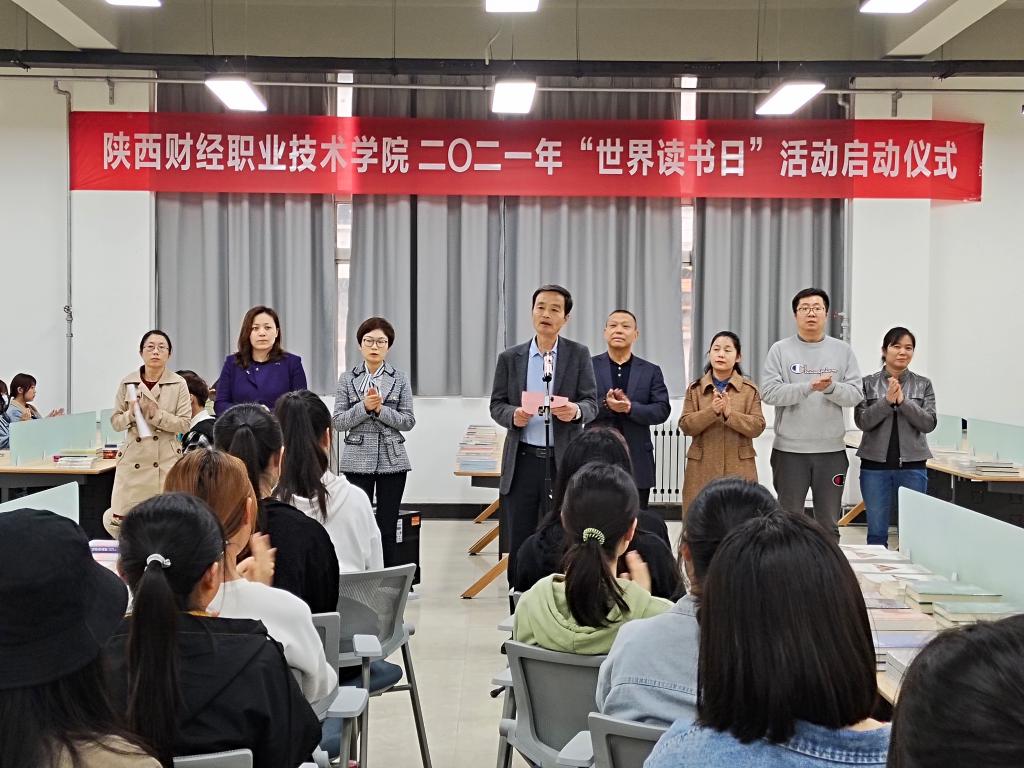 图书馆读者服务部副主任宋璐璐宣读《陕西财经职业技术学院关于开展2021年“世界读书日”活动的通知》。