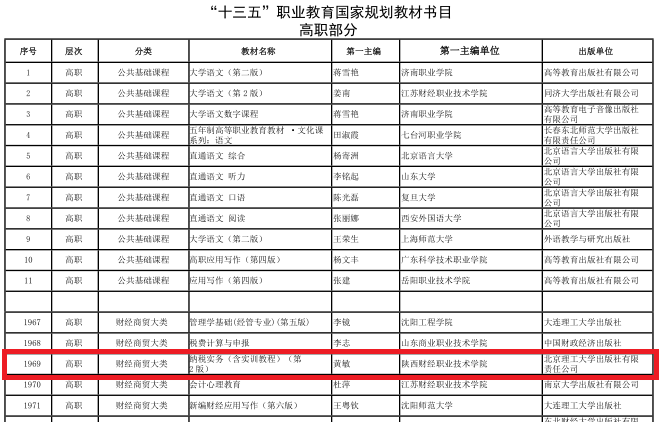 近日,教育部办公厅下发《关于公布“十三五”职业教育国家规划教材书目的通知》(教职成厅函【2020】20号),公布3973种“十三五”职业教育国家规划教材,我院教师黄敏编写的《纳税实务(含实训教程)第2版》入选,这是我院深入贯彻落实党中央、国务院关于教材建设的部署部门和《国家职业教育改革实施方案》有关要求、高度重视教材建设的重要成果。