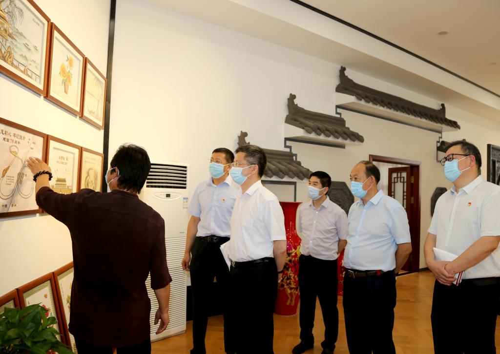 在贺兴文大师工作室,方光华听取了人文艺术学院院长贺兴文对麦秆画的历史传承、产品形式、表现手法、蕴含的文化特质等情况的介绍,饶有兴趣地驻足观看,对我院的文化与艺术对接、文化与教学融合、文化与实践结合的做法给予高度评价。