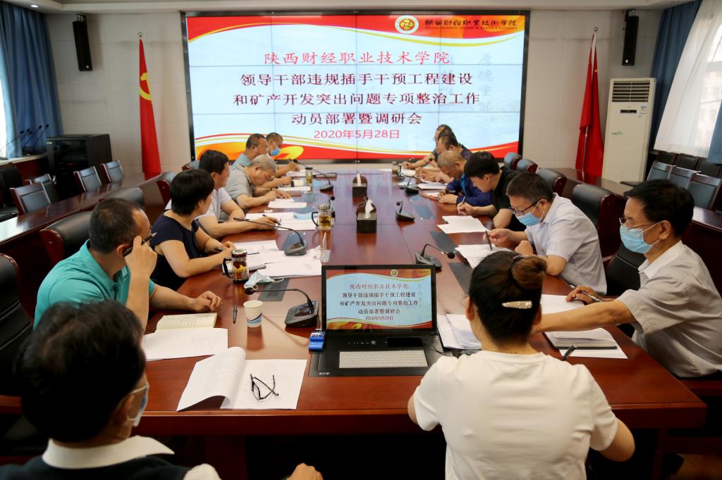 5月28日上午,我院在办公楼四楼会议室召开领导干部违规插手干预工程建设和矿产突出问题专项整治工作动员部署暨调研会。动员部署会学院领导班子成员及处级以上干部参加,调研会学院党委书记张志华、二级学院院长及人事处、财务处、国有资产管理处、基建办、总务处、教务处部门负责人参加。学院党委副书记兼纪委书记刘文青主持会议。