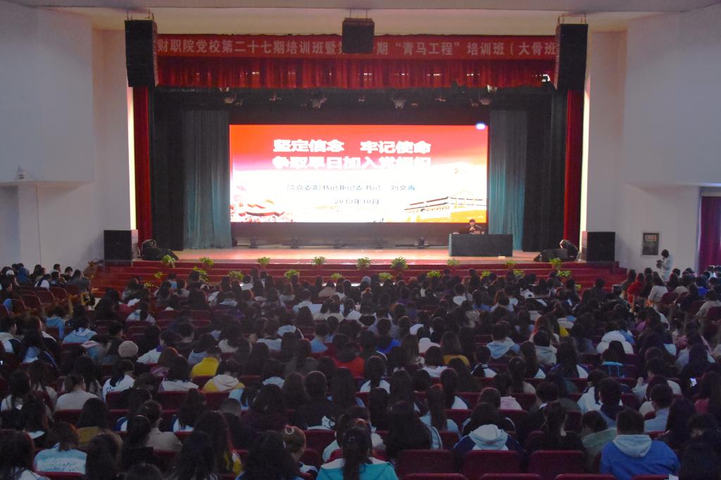 10月24日下午4时,学院党委副书记、纪委书记刘文青以《坚定信念,牢记使命,争取早日加入党组织》为主题,在学院大礼堂为我院党校第二十七期培训班暨第十一期“青马工程”培训班(大骨班)学员作专题讲座。1400余名入党积极分子及学生干部聆听了讲座。讲座由党委组织部副部长、党校副校长张洁主持。