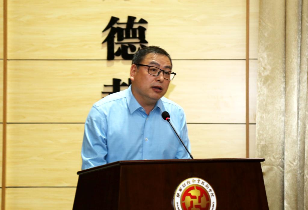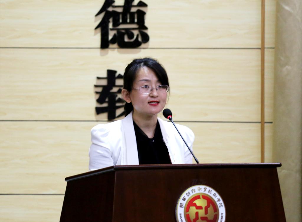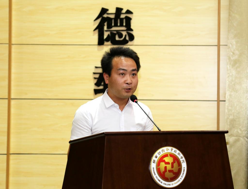 商学院教师张馨予作为教师代表发言。她首先阐释了学院内涵式发展在教学理念、人才培养目标、师资队伍、教育质量、实习实训、校园文化等方面取得的各项突出成绩,并强调了此次质量扩招对在座的同学们具有的深刻意义和深远影响。她代表全体教师承诺,在未来的日子里,陕财所有教师将不断探索,不断尝试新的教学方法,跨界融合,为扩招新生在毕业后能在社会大放光彩做出自己的努力和贡献。