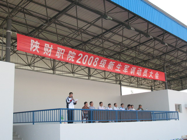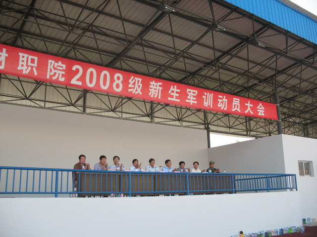 2008年9月5日下午3时,我院2008级新生军训动员大会在学院新建的塑胶操场上召开。