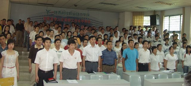 6月27日下午,陕财职院在多媒体教室召开全院党员大会,隆重庆祝建党八十六周年。出席大会的领导有学院党委书记文锋、党委副书记、院长阎平、党委委员、副院长刘晓玉、范忠、刘建彪、王文汉、党委副书记兼纪委书记刘文雅。近200名新老党员参加了大会。刘文雅主持会议。