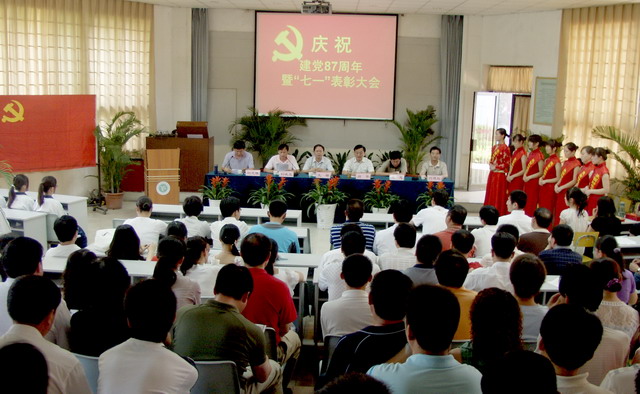 大会在雄壮的国歌声中开始。会议表彰了2007年以来在学院改革发展、迎评促建及各项工作中涌现出来的一批团结奋进、成绩显著的先进党支部、优秀共产党员和优秀党务工作者。60多名新入党的同志举行了庄严的宣誓仪式,全体共产党员重温了入党誓词。