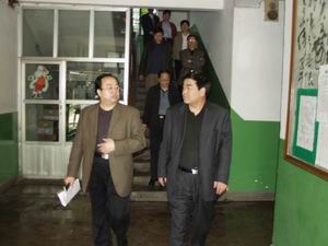 上午9时许,刘维隆和王树汉、蔺松元等乘一辆面包车来到陕财职院,顾不上休息,就在校长舒煜、党委书记索满囤陪同下,深入教室、公寓、食堂、图书馆、网管中心等检查预防“非典”情况,一再叮咛校领导不要影响学生上课。在教室,刘维隆和下课的学生亲切交谈,询问情况,当得知学校给每个宿舍配了体温计,免费向学生发放了中草药,坚持每天对公共场所消毒时,他非常高兴,希望学生理解、配合学校采取的措施,做好自身的防护。在教师休息室、学生科、教务科,他和刚下课的老师及工作人员一一握手,表示慰问,要求学校领导一定要做好教师和家属的预防工作,使他们安心上课和工作。教师们对厅领导无微不至的关心和爱护报以热烈的掌声。