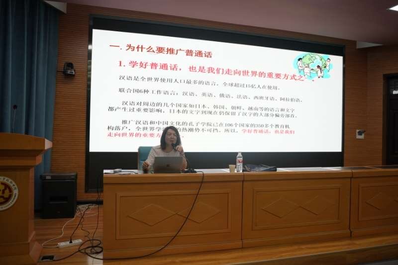 讲座中王娟老师用生动有趣的视频案例,深入浅出地讲解了推广普通话的必要性、普通话与方言的关系、如何说好普通话三个方面的问题,让同学们充分感受到了语言文化的魅力,明白了学好普通话的重要性。王娟,普通话作为我国的国家通用语言,不仅是人们沟通交流的重要工具,更是传承中华文化的重要载体。推广普通话并不是要消灭方言,而是通过掌握民族共同语来打破地域的隔阂,更好的促进不同地区的人们之间交流合作。