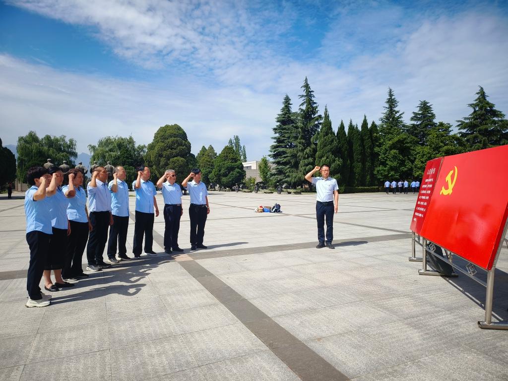 在扶眉战役纪念碑前,支部书记雷锋刚、宣传委员王国辉向扶眉战役烈士敬献花篮,支部全体党员鞠躬默哀,追思革命先烈的丰功伟绩。接着,全体党员在领誓人王国辉的带领下,面对鲜艳的党旗,重温入党誓词,表达传承红色基因、永葆政治本色的坚定决心。随后,全体党员进入扶眉战役纪念馆,一边聆听讲解员的讲解,一边参观丰富的历史资料及烈士照片、遗物等,重温革命先烈的英雄事迹和峥嵘岁月,感受烈士们坚定的革命信念、高尚的爱国情操和伟大的牺牲精神。