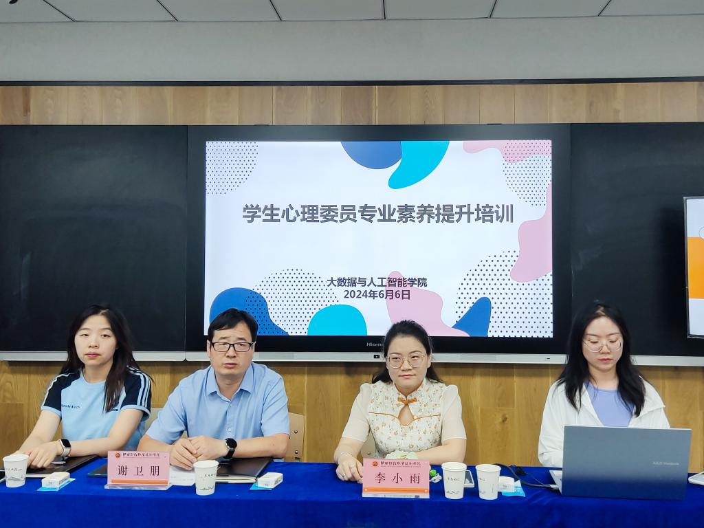 为加强心理委员对岗位的认知,提高心理委员整体素质,推动学院心理健康教育再上新台阶,6月6日,大数据与人工智能学院特邀国家二级心理咨询师李小雨于516教室开展心理委员专题培训。大数据与人工智能学院二级心理辅导站负责老师及心理委员共同参与。