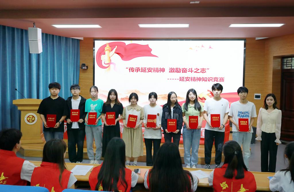 6月11日下午,在马克思主义学院思想道德与法治教研室全体教师的指导下,我校延安精神志愿宣讲团在继续教育培训厅成功举办了一场以“传承延安精神激励奋斗之志”为主题的延安精神知识竞赛,我校古韵国学社、红色研习社全体社员积极参与,共同追寻红色足迹,传承革命精神,活动现场气氛热烈。