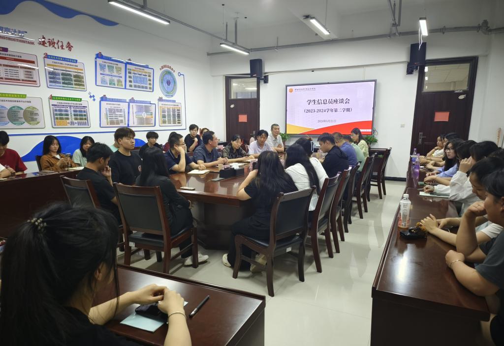 为加强教学质量监控,及时了解学生对人才培养的基本要求及对各教学环节的意见建议,充分调动学生民主参与教学工作的积极性和主动性,结合教学质量提升月系列活动,我校于5月21日晚在教学楼307会议室召开了学生信息员座谈会。党委宣传部部长严丽丽,教学督导委员会副主任王国辉,教学质量管理中心副主任雷锋刚,总务处、教学质量管理中心、学生处、图书馆相关工作人员以及各二级学院的学生信息员40余人参加。会议由教务处处长兼教学质量管理中心主任刘军主持。