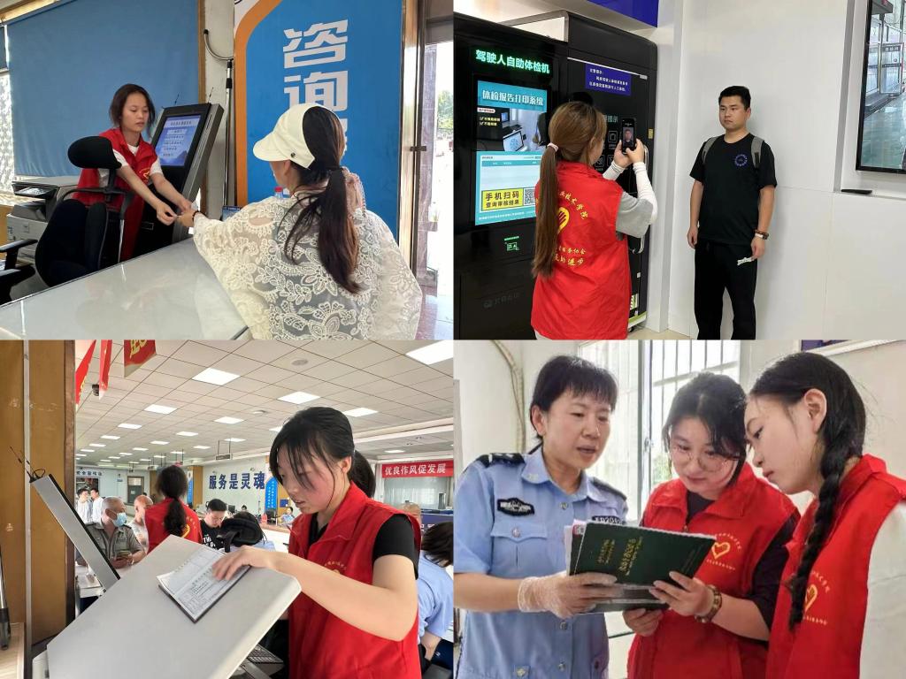 “星梦”文艺发展中心的志愿者们前往我市公安局交警支队车管所,帮助工作人员做好咨询台服务、窗口协办、自助驾考、自助拍照、自助体检等服务,在志愿者的耐心帮助下,群众们顺利办理完成业务办理并对我校大学生志愿者们的服务表示赞许与认可。