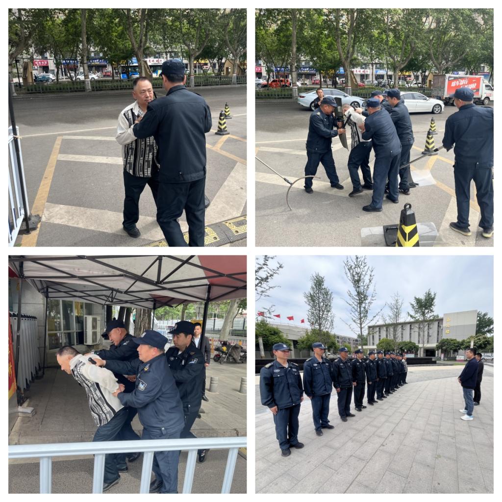 学校保卫处高度重视本次实战演练,制定《反恐防暴应急演练实施预案》。活动开始前,安保科科长蔺卫强围绕演练目的、要求和内容等细节对参加人员进行统一培训。演练内容为假想1名外来人员接近学校大门,伺机进入校园内进行闹事伤人。保安队员上前询问,“歹徒”情绪激动,挥舞刀具企图强行闯入。保安队员一方面立刻疏散周边师生群众,另一方面用对讲机呼叫值班保安队员携带防暴装备迅速前往支援,利用钢叉、防暴盾、警棍等专用防卫器械成功牵制“歹徒”,恢复大门区域正常出入秩序。