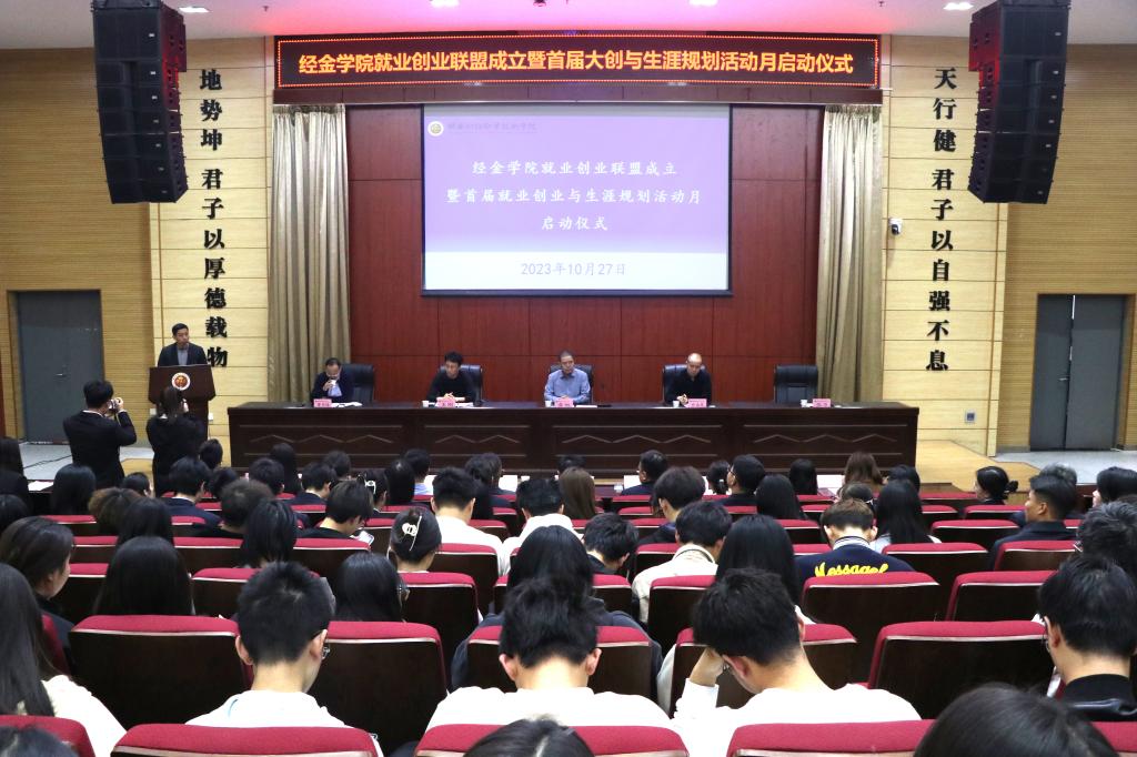 为进一步落实立德树人根本任务,增强学生就业创业意识,助推校政企多方合作协同发力,促进我院就业工作高质量发展。10月27日下午,经金学院就业创业联盟成立暨首届大学生就业创业与职业生涯规划活动月启动仪式在学术报告厅隆重召开。学院党委委员、副院长雷旭,学生工作处处长乔晶策、副处长王刚,经金学院党总支专职副书记张力,校友会秘书长曹崇禧,校内、校外导师,学院全体无课教师及学生参会。