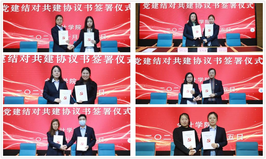 签约仪式在庄严的国歌声中拉开序幕,全体起立,奏唱国歌。由党总支宣传委员刘金鹿宣读会计学院教师党支部和学生党支部结对共建活动实施方案。接下来,六个教师党支部负责任人分别与六个学生党支部负责人签署党建结对共建协议书,表示今后将通过活动共办、组织共建、信息共享等方式,开展党建共建活动。李妙娟表示各支部要做好对接、严格落实,要加强与支部间的学习交流,不断拓展合作的广度与深度,做到资源共享、业务共融,搭建起服务师生的良好桥梁,持续开展内容丰富、形式多样的主题党日活动。