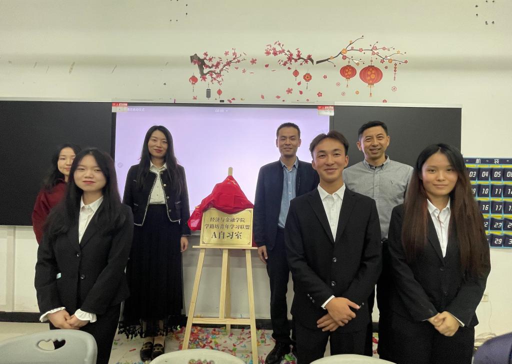 10月17日晚,经济与金融学院在教学楼712教室举行了“学路坊青年学习联盟成立暨首批主题自习室”开放仪式。学院党总支专职副书记张力、学管人员及学路坊青年联盟首批会员参加。