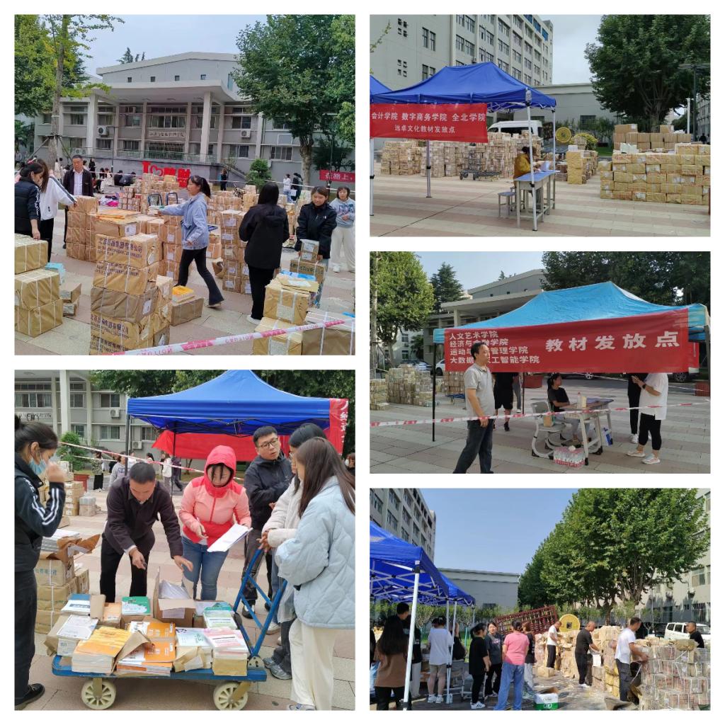 教务处经过严格的测算,做好为学生教材发放保障工作,制定教材发放实施方案,周密部署于2023年9月3日早7点,第一批次发放2020级五年制和2022级三年制。2020级五年制教材根据就近原则送至创新创业园区,按照专业类别区分,发放至学生手中。2022级三年制学生的教材按照双高专业群专业和其他专业区分,教材种类整齐码放搬桌椅、搭帐篷、设置隔离带迅速做好发放前准备工作。随后,在各二级学院教材管理老师、学生干部等的协助下,3个小时便将教材高效发放到学生手中。