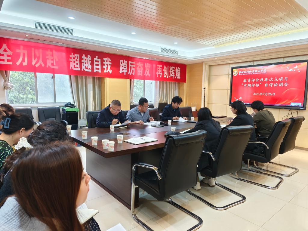 为了做好迎接省委教育工委和教育厅的教育评价改革试点项目“中期评估”的准备工作,2023年9月26日上午,我校在实训楼二楼会议室召开教育评价改革试点项目“中期评估”自评协调会。各试点子项目组的牵头部门(教务处、教学质量管理中心、人事处、学生处、数字商务学院、运动与健康管理学院、人文艺术学院等)负责人和各子项目组的联络员参加了会议。教务处处长(兼任教学质量管理中心主任)刘军主持会议。