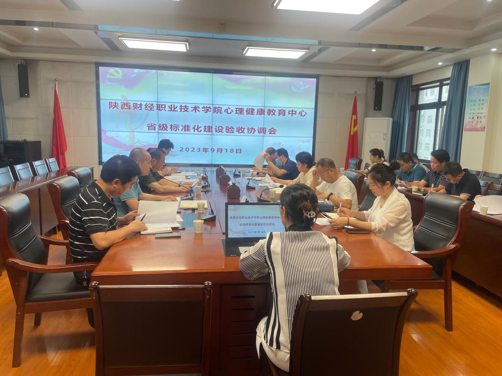 会上乔晶策对我校心理健康教育中心省级标准化建设验收前期资料准备、验收当日安排、实地考察路线等进行了全面的汇报。详细解读了《陕西财经职业技术学院创建陕西省标准化心理健康教育中心实施方案》(陕财职院【2023】58号)号文件,逐条分解任务,明确部门分工,强调完成时限。