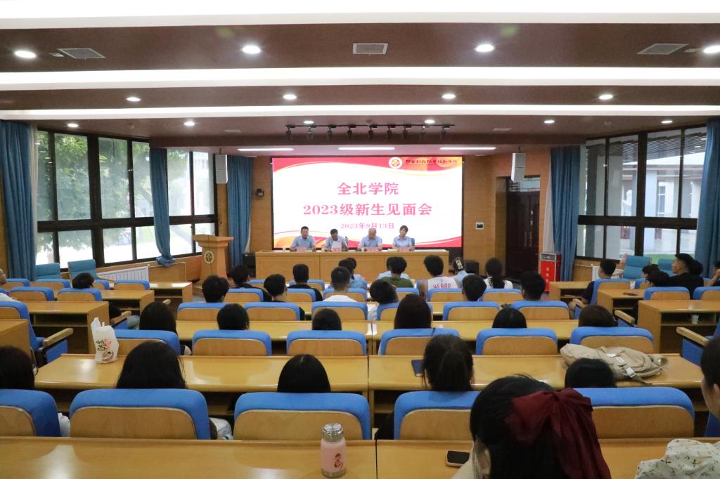 ——春风沐雨润物无声,循循善诱做好入学教育工作。为引导学生了解学校、热爱学校、融入学校,坚定理想信念、树立远大抱负,争做有理想、有本领、有担当的新时代优秀大学生,学院精心部署、认真筹划,于9月13下午6点在继续教育培训厅,举行2023级新生见面会。我院党支部书记兼副院长雷剑、国际交流与合作处副处长兼全北学院副院长杨华、办公室副主任樊凡、学生管理科副科长孟琰峰、各新生班班主任及我院23级全体新生参加了见面会。会议由孟琰峰主持。