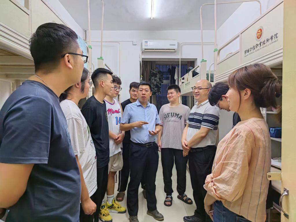 ——暖心走访深切关怀,耐心细致做好公寓走访工作。为进一步了解新生到校后的学习和生活状况,引导新生更快适应大学生活,切实解决新生遇到的实际问题,9月15日晚,杨华前往我院2023级新生宿舍走访慰问,为新生送去关心和温暖。学院办公室副主任樊凡、学生管理科副科长孟琰峰,新生班主任李杰、张珈瑜、陈泽慧陪同参加。重点查看了宿舍卫生、基础设施等状况,并对同学们的到来表示热烈欢迎。走访过程中杨华与新生畅谈,耐心解答了同学们提出的各类问题,叮嘱同学们要养成良好习惯,努力学习专业知识,以全新的姿态投入到大学生活中。