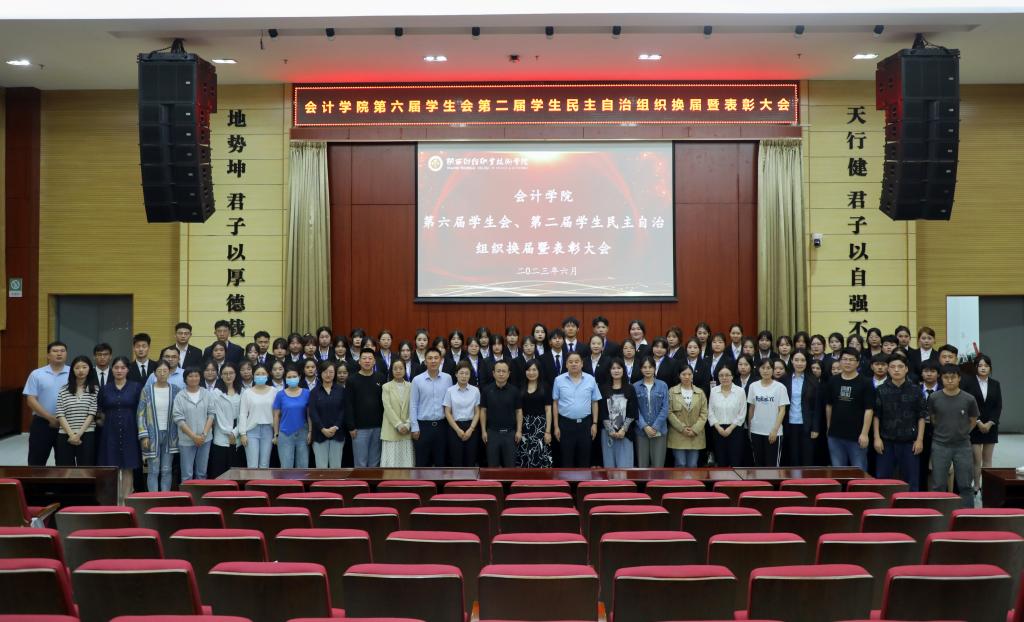 6月6日晚,会计学院第六届学生会及第二届学生民主自治组织换届暨表彰大会在学术报告厅隆重召开。会计学院党总支书记贺适、党总支专职副书记李妙娟、学生管理科科长赵静、学生管理科副科长甘少华出席,全体辅导员以及各班班团干部代表参加本次大会。会议由团总支书记张璐主持。