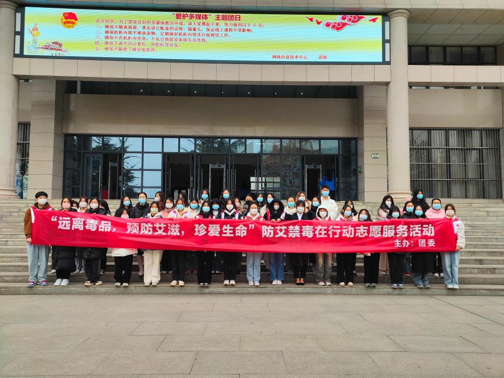 2022年12月1日,校团委为提高学校学生禁毒防艾意识,营造健康和谐的校园环境于第35个“世界艾滋病日”,组织校学生会志工部开展了“远离毒品,预防艾滋,珍惜生命”防艾滋病日暨禁毒防艾志愿服务主题活动。