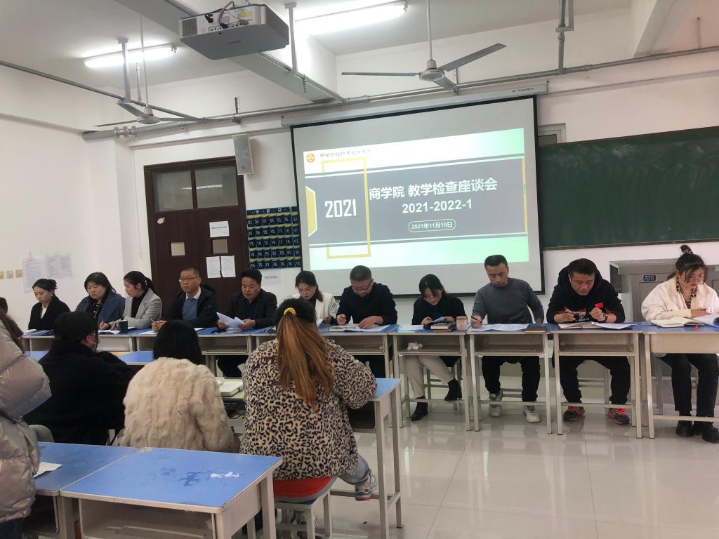为加强教学管理,进一步提升教学质量,深化教育教学改革,商学院于11月18日下午,商学院在综合楼614召开教学质量检查师生座谈会,此次活动由商学院教学科安排组织,商学院院长董媛、商学院书记张晓战,教学副院长李福顺、教学科长李栋、团总支书记刘明、商贸流通系主任张馨予、旅游服务系主任丁小伟、酒店管理专业负责人王永倩、物流管理专业负责人刘昙、青年教师吴红阳、教学秘书许潇及全院三十余学生代表参加此次座谈会,会议由教学科科长李栋主持。