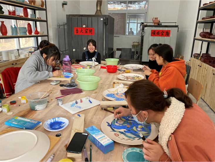 人文艺术学院陶艺工作坊是我院为坚持弘扬和传承非遗传统文化而建设的实训制作基地。陶艺工作坊努力培养工艺美术品设计学生的情趣爱好和动手操作能力,让学生通过实训课程了解传统文化制作方法,进一步掌握非遗文化特色,学生在这里亲自动手,设计、制作、烧制设计的陶艺作品,感受非遗文化魅力。