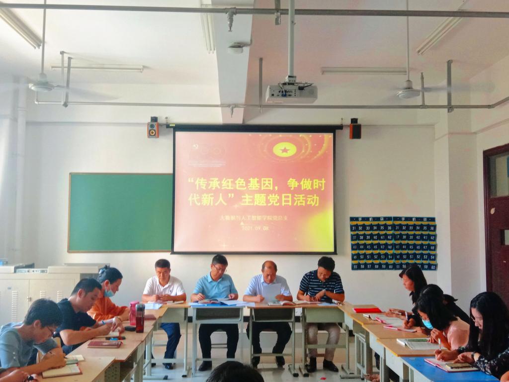 为加强党员党性教育和爱国主义教育,让党员从红色传统、红色文化、红色基因中吸收丰厚的营养、汲取前行的力量,9月8日,大数据于人工智能学院党总支于综合楼513教室组织召开了“传承红色基因,争做时代新人”主题党日活动。大数据与人工智能学院党总支全体教师党员参加了本次学习活动。会议由党总支书记曹耀辉主持。