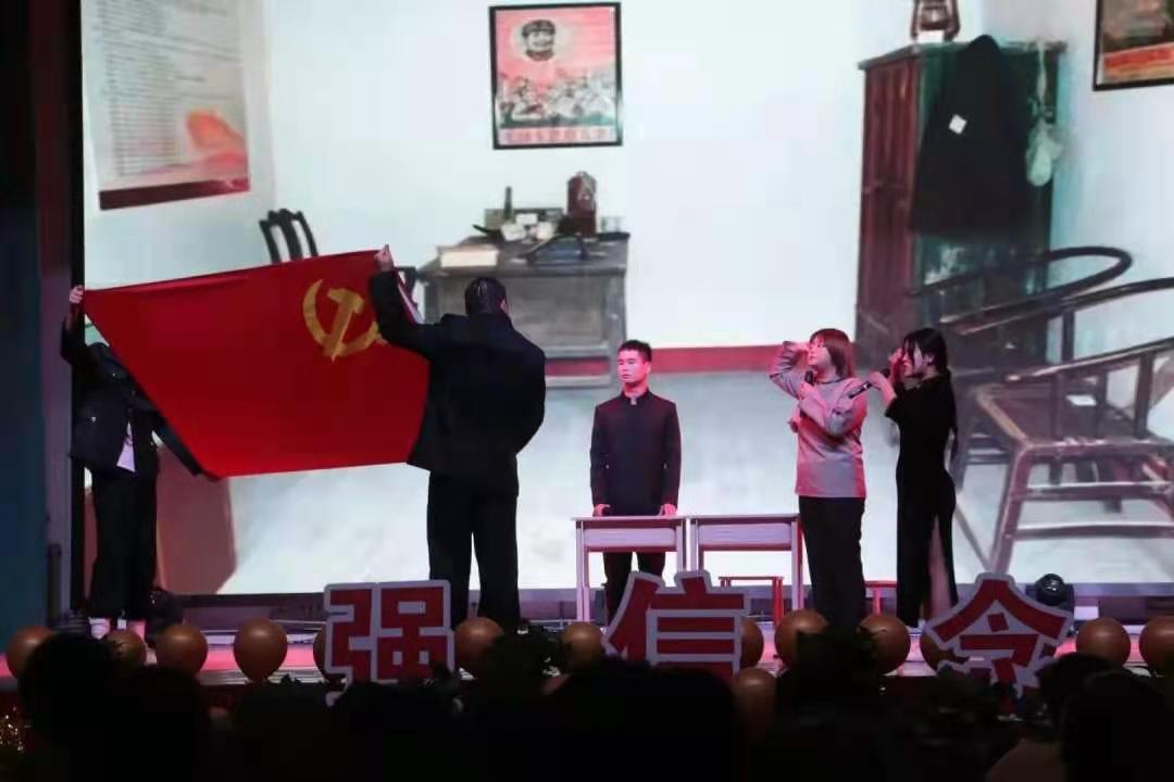 为了迎接建党100周年,更好的践行1+6+X+1“向日葵”育人计划,丰富学生课余生活和精神世界。5月12日下午,由学院团委主办,商学院团总支承办,其他各二级学院团总支协办的庆祝建党100周年之经典诵读“红色舞台,演绎历史”决赛在大礼堂举行。学院团委书记窦曼娟、团委正科级干部连静、用友新道会计学院团总支书记张璐、大数据与人工智能学院团总支书记谢卫朋、商学院团总支书记刘明、经济与金融学院团总支书记张欣瑞,团委兼副书记吕斌及商学院辅导员代表及学生代表共计近千人参加了此次活动。