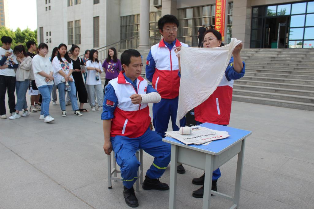 正值红十字会博爱周,5月19日下午,团委邀请咸阳蓝天救援队在综合楼前举办了“喜迎建党百年助力全运盛会”为主题的急救知识进校园志愿服务活动。此次活动由团委主办,红十字协会承办,100余名十四运志愿者以及400余名同学主动参与到此次颇具意义的培训中。