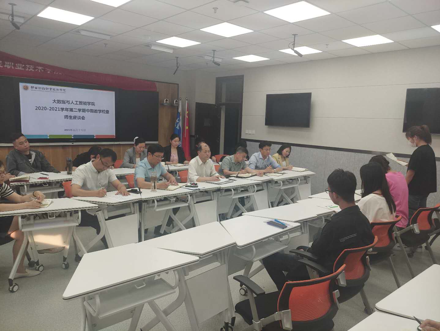 座谈会上何宏波简要阐述了中期座谈会的目的和意义,鼓励同学们真实、客观地反映各科任课教师在日常教学过程中存在的问题。其次,大数据与人工智能学院各班学习委员依次发言,学生代表们纷纷表示老师在上课过程中能突出重点、内容详细、条理清晰、分析得当。对于难理解的知识点能对同学们进行通俗易懂的讲解,能够很好的结合实例做到理论与实际相结合,课堂氛围生动有趣。极大调动了同学们深入学习的积极性;提升了同学们对于学习知识的热情度。对于老师们的授课方法和形式表示满意,同时也有个别学生对于个别老师的授课方式、教案设置以及教师评价等方面提出了中肯的建议与意见。学生代表们踊跃发言,现场气氛热烈。随后,学院领导针对学生提出的有关问题进行了详细的解答。