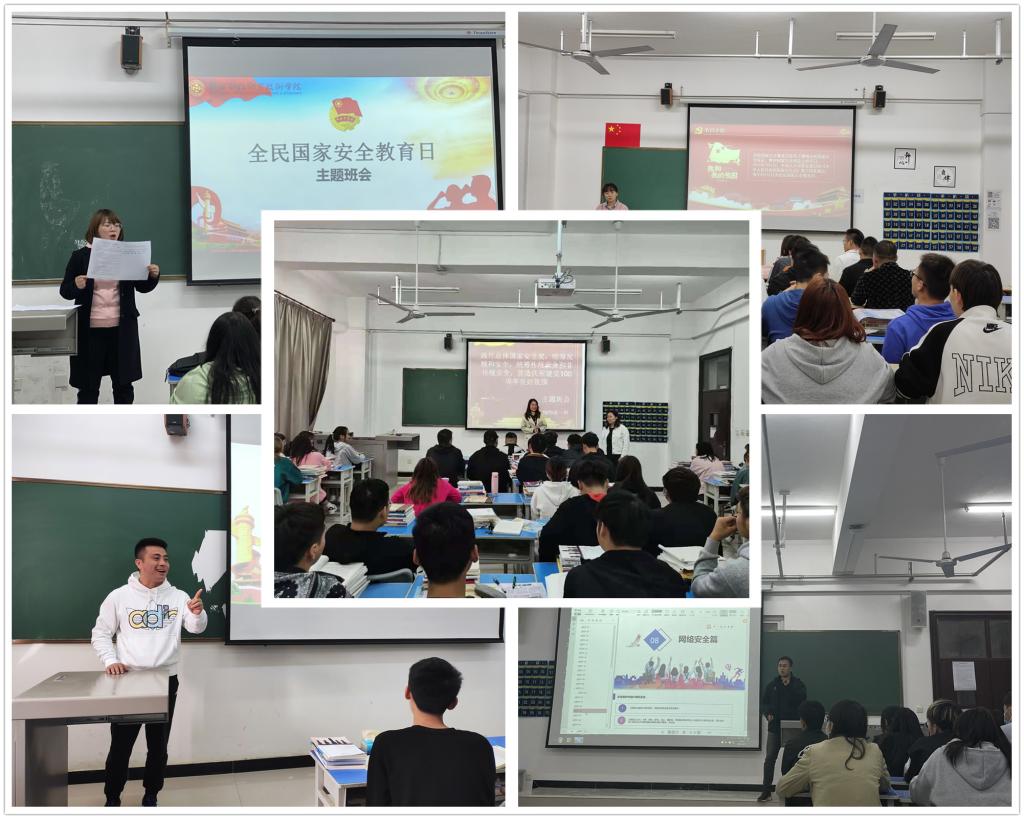 组织召开主题班会,树牢安全责任意识。4月14日晚自习,商学院组织召开国家安全教育主题班会。各位辅导员组织所带班级开展“国家安全教育”主题班会,通过宣读倡议书、观看视频、交流讨论等多种通俗易懂的方式,让学生理解“国家安全教育”的意义,树立国家安全意识,提升维护国家安全的能力。